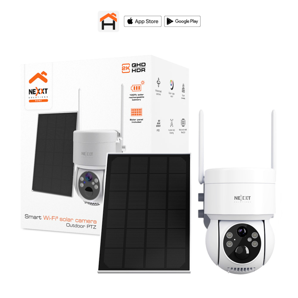 Protege tu hogar con tecnología innovadora y energía sostenible gracias a la Cámara con Panel Solar Exterior Wi-Fi de Nexxt Solutions.