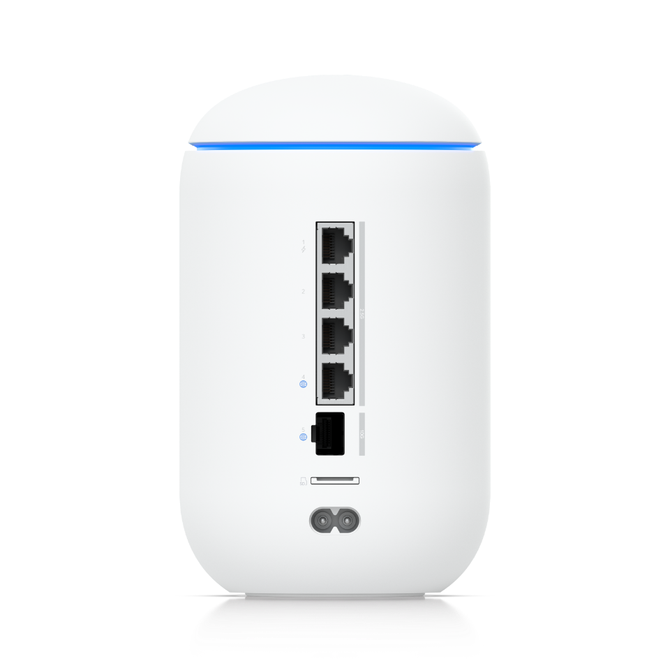 Puerta de enlace en la nube 10G de escritorio con WiFi 7 integrado, conmutador PoE, almacenamiento microSD y compatibilidad total con aplicaciones UniFi.